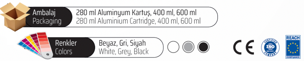 | CURING RATE | 3mm / 24 hours (23 °C, % 50 R.H ) |